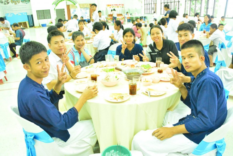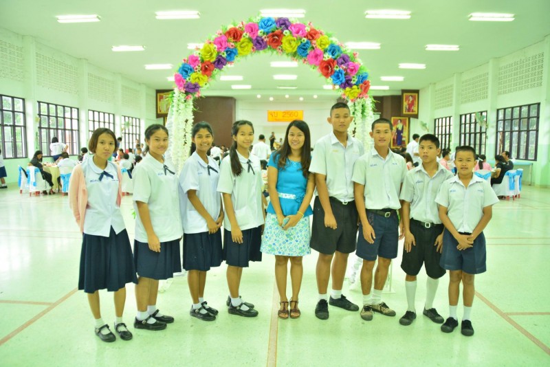 ณ ห้องประชุมฯ พร้อมทั้งคณะครู และผู้ปกครอง ร่วมผูกข้อมือเพื่อความเป็น สิริมงคลแก่นักเรียน ในวันที่สำเร็จการศึกษา