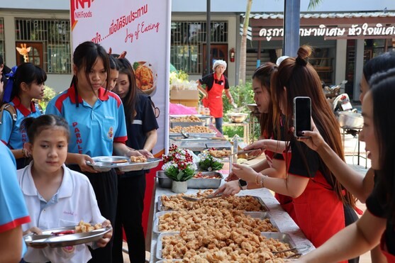 วันที่ 16 มีนาคม 2569 กรรมการผู้จัดการและบุคลากร บริษัท Thai Nippon Foods จำกัด ได้นำไก่ทอดผลิตภัณฑ์จากบริษัทมาเลี้ยงอาหารกลางวัน ให้กับนักเรียน