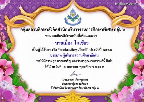 ได้รับรางวัล "ยกย่องเชิดชูเกียรติ" ประจำปี 2569 ประเภท ผู้บริหารสถานศึกษาดีเด่น