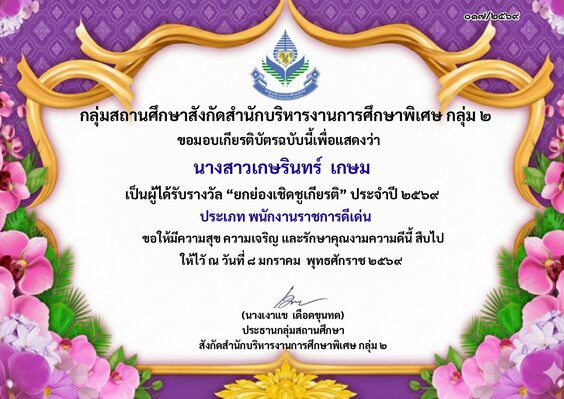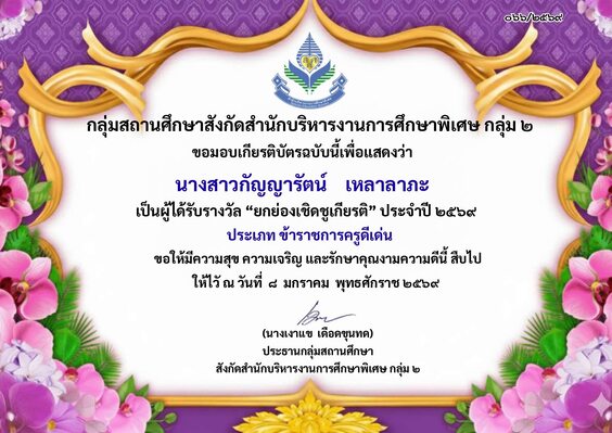 ได้รับรางวัล “ยกย่องเชิดชูเกียรติ” ประจำปี 2569 ประเภท รองผู้อำนวยการศึกษาดีเด่น
