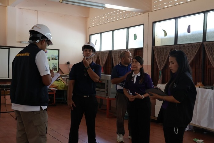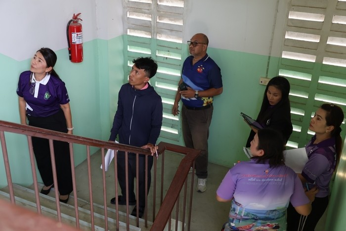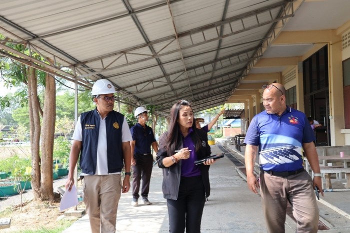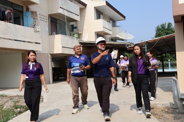 โรงเรียนโสตศึกษาปานเลิศ จังหวัดลพบุรี สำนักงานโยธาธิการและผังเมืองจังหวัดลพบุรี เข้าตรวจสอบความมั่นคง ความแข็งแรงและความปลอดภัยของอาคารเรียน อาคารประกอบ ที่มีรอยแตกร้าว เพื่อเป็นการเฝ้าระวังพื้นที่ ที่ได้รับความเสียหายหรือมีความเสียง