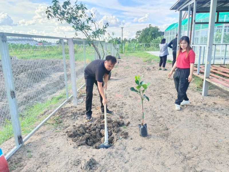 ดร.สุวรรณทนา ชื่นอยู่ ผู้อำนวยการโรงเรียน ว่าที่ร้อยตรีหญิงทัศวรรณ จันทร์ลบ รองผู้อำนวยการโรงเรียน พร้อมด้วยคณะครูและบุคลากรทางการศึกษาร่วมใจการปลูกต้นไม้บริเวณโรงเรือนเลี้ยงสัตว์และเรือนเพาะชำ