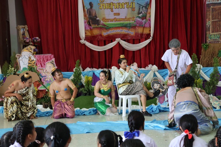 วันที่ 26 มิถุนายน 2568 ดร.สุวรรณทนา ชื่นอยู่ ผู้อำนวยการโรงเรียน ว่าที่ร้อยตรีหญิงทัศวรรณ จันทร์ลบ รองผู้อำนวยการโรงเรียน พร้อมด้วย คณะครู บุคลากรทางการศึกษา จัดกิจกรรมวันสุนทรภู่และวันภาษาไทยแห่งชาติ ประจำปีการศึกษา 2568