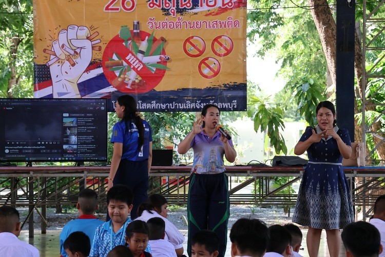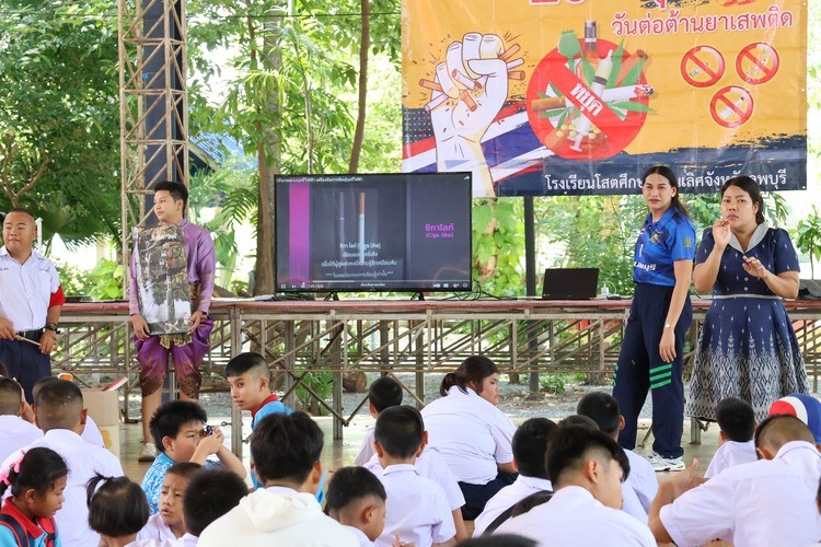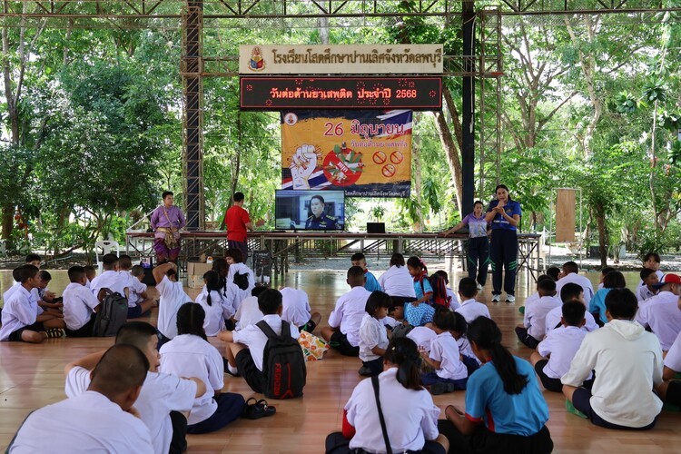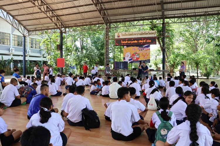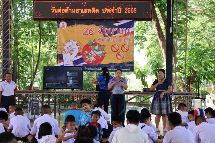 วันที่ 26 มิถุนายน 2568 ดร.สุวรรณทนา ชื่นอยู่ ผู้อำนวยการโรงเรียน ว่าที่ร้อยตรีหญิงทัศวรรณ จันทร์ลบ รองผู้อำนวยการโรงเรียน พร้อมด้วย คณะครู บุคลากรทางการศึกษา จัดกิจกรรมวันต่อต้านยาเสพติดโลก ประจำปี 2568