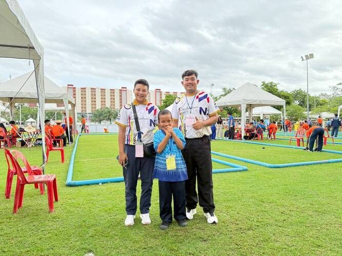 1. เด็กชายเตชินท์ สิงสุข เหรียญทอง กีฬา บอชชี่ ประเภท คู่ยูนิฟายด์ ชาย (Division 1) 2. เด็กชายเนตรนภัส พรรคทิง เหรียญทอง กีฬา บอชชี่ ประเภท คู่ยูนิฟายด์ ชาย (Division 1)