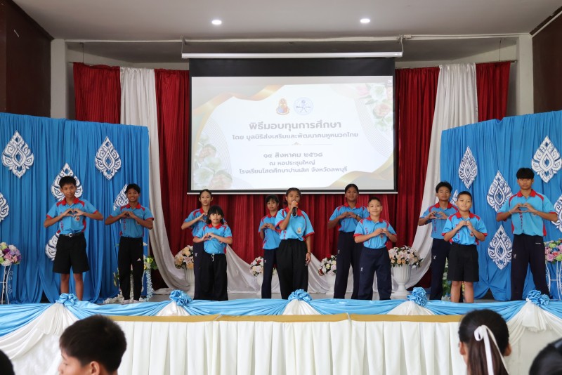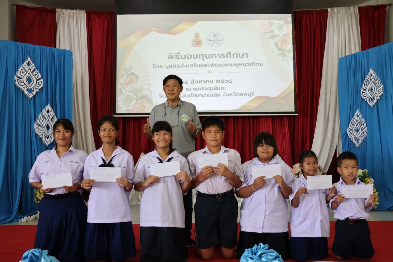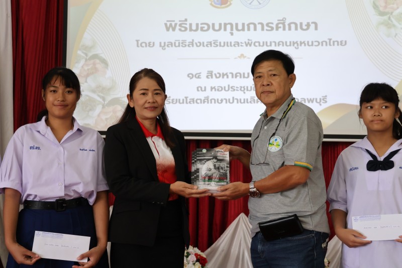 วันที่ 14 สิงหาคม 2568 นายบุริศร์พงศ์ ชัยเจริญภัทร ประธานมูลนิธิส่งเสริมและพัฒนาคนหูหนวกไทย พร้อมคณะกรรมการมูลนิธิ ได้มามอบทุนการศึกษาให้นักเรียนโรงเรียนโสตศึกษาปานเลิศ จังหวัดลพบุรี