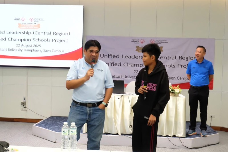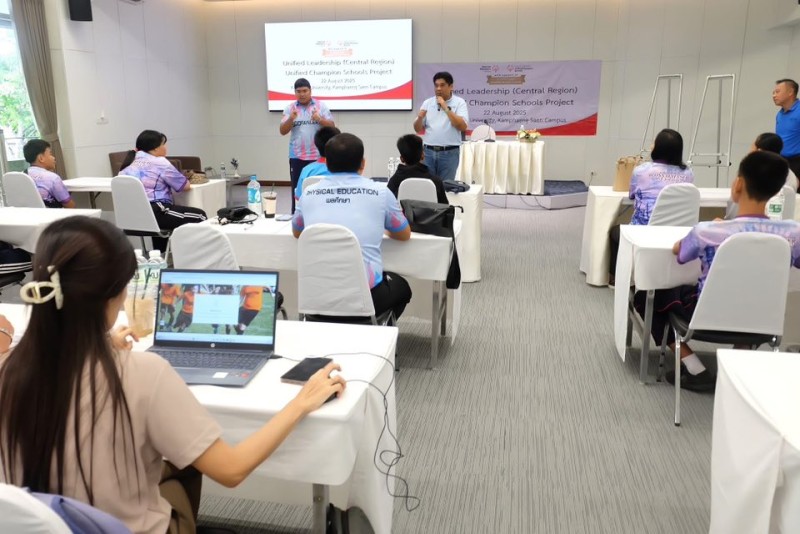 วันที่ 22 สิงหาคม 2568 ครูและนักเรียนโรงเรียนโสตศึกษาปานเลิศ จังหวัดลพบุรี เข้าร่วมอบรม โครงการ Unified Champion School ภาคกลาง ณ ห้องประชุม สวนแสนปาล์ม สำนักส่งเสริมและฝึกอบรม มหาวิทยาลัยเกษตรศาสตร์ วิทยาเขตกำแพงแสน