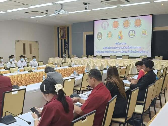 วันที่ 2 กันยายน 2568 โรงเรียนโสตศึกษาปานเลิศ จังหวัดลพบุรีเข้าร่วมทำบันทึกข้อตกลงความร่วมมือโครงการ"ส่งเสริมการศึกษาและการมีงานทำสำหรับคนพิการ" ณ อาคารรัตนเทพสตรี มหาวิทยาลัยราชภัฎเทพสตรี จังหวัดลพบุรี