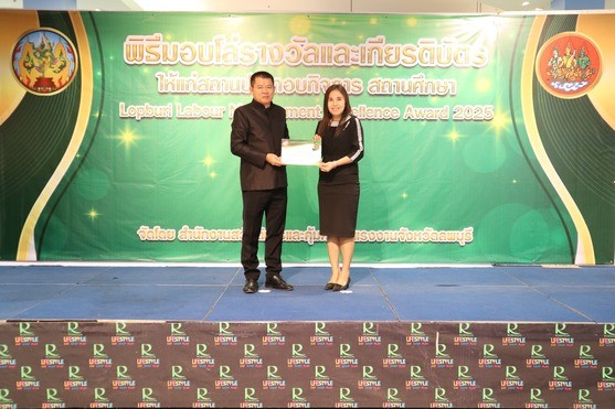 วันที่ 18 พฤศจิกายน 2568 ว่าที่ร้อยตรีหญิงทัศวรรณ จันทร์ลบ รองผู้อำนวยการโรงเรียนโสตศึกษาปานเลิศ จังหวัดลพบุรี เข้าร่วมรับรางวัลสถานศึกษาปลอดภัย “ดีเด่น” ติดต่อ 5 ปีซ้อน จัดโดย สำนักงานสวัสดิการและคุ้มครองแรงงานจังหวัดลพบุรี
