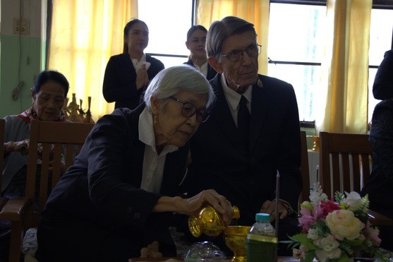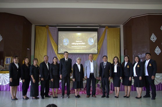 นายไพศาล สุขนิตย์ทรัพย์ ประธานคณะกรรมการสถานศึกษา นายเนื่อง โตเขียว ผู้อำนวยการโรงเรียน ว่าที่ร้อยตรีหญิงทัศวรรณ จันทร์ลบ รองผู้อำนวยการโรงเรียน ผศ.ดร.เปรมจิตต์ ขจรภัย ลาเซน ประธานมูลนิธิปานเลิศขจรภัย คุณดุสิต ขจรภัย ที่ปรึกษาประจำคณะกรรมาธิการ Dr.Robert W. Larsen พร้อมด้วยคณะครูและบุคลากรทางการศึกษา นักเรียน ร่วมกิจกรรมวันสถาปนา กตัญญูกตเวทิตา ประจำปี 2568 ครบรอบ 23 ปี โรงเรียนโสตศึกษาปานเลิศจังหวัดลพบุรี