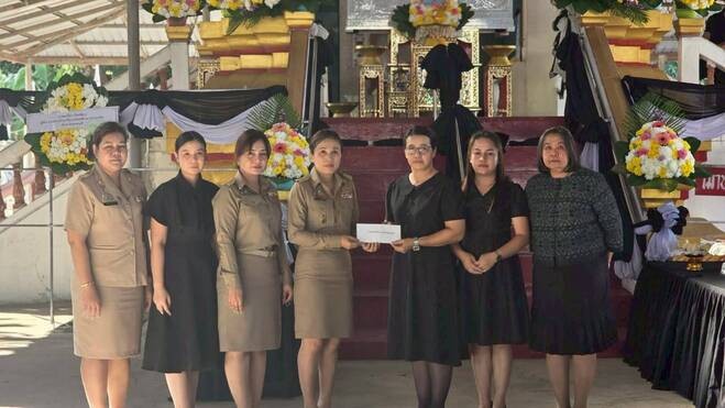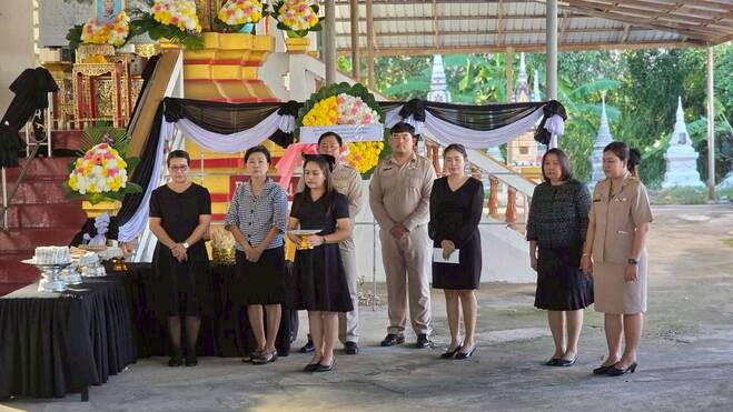 ผู้บริหาร คณะครูเข้าร่วมพิธีฌาปนกิจ นายบุญหลง กระแสทรง คุณพ่อของนางสาวลัดดา กระแสทรง ครูโรงเรียนโสตศึกษาปานเลิศ จังหวัดลพบุรี ณ วัดบ้านหมี่ใหญ่ อำเภอบ้านหมี่ จังหวัดลพบุรี
