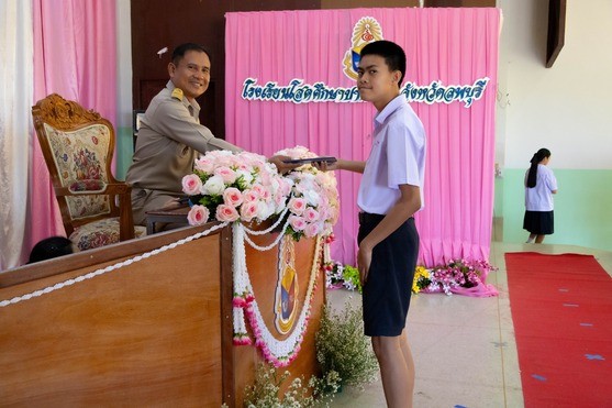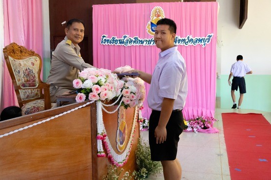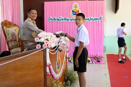 นายเนื่อง โตเขียว ผู้อำนวยการโรงเรียน เป็นประธานในพิธี พิธีปัจฉิมนิเทศและมอบประกาศนียบัตร นักเรียนระดับชั้นมัธยมศึกษาปีที่ 3 และ ชั้นมัธยมศึกษาปีที่ 6 ประจำปีการศึกษา 2568 ณ โรงเรียนโสตศึกษาปานเลิศจังหวัดลพบุรี ว่าที่ร้อยตรีหญิงทัศวรรณ จันทร์ลบ นางสาวอภิญญา บุณยเกียรติ รองผู้อำนวยการโรงเรียน คณะครู บุคลากร นักเรียน และผู้ปกครอง ร่วมกิจกรรม พร้อมทั้งร่วมกับคณะครูผูกข้อมือเพื่อความเป็นสิริมงคลแก่นักเรียน