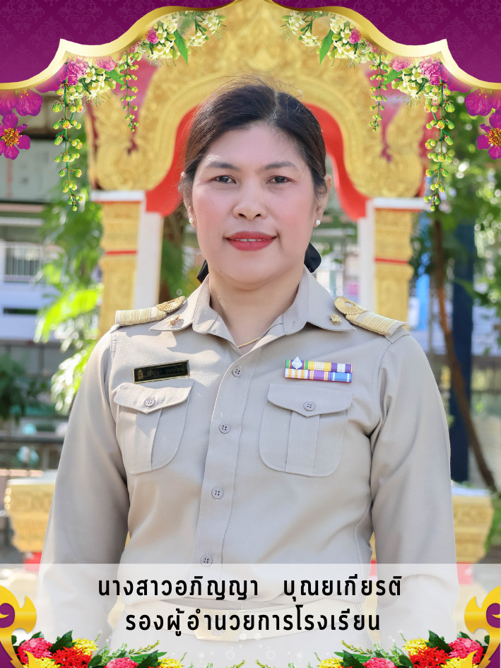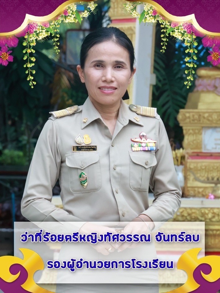 ชื่อ-นามสกุล : ว่าที่ร้อยตรีหญิงทัศวรรณ จันทร์ลบ ตำแหน่ง : รองผู้อำนวยการโรงเรียน ดำรงตำแหน่งเมื่อ : 2566 ถึงปัจจุบัน