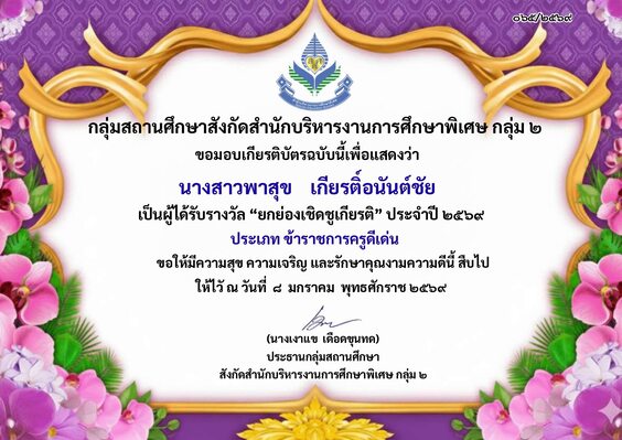 ได้รับรางวัล “ยกย่องเชิดชูเกียรติ” ประจำปี 2569 ประเภท รองผู้อำนวยการศึกษาดีเด่น
