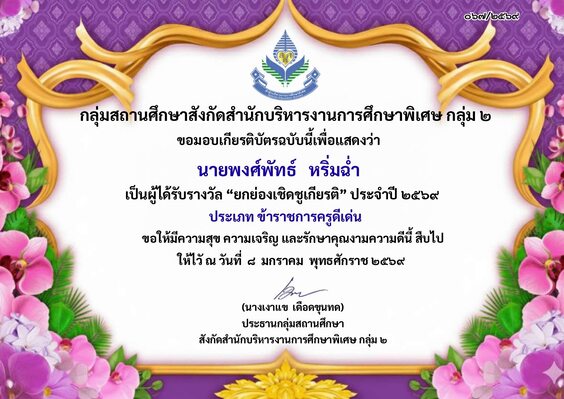 ได้รับรางวัล “ยกย่องเชิดชูเกียรติ” ประจำปี 2569 ประเภท ข้าราชการครูดีเด่น