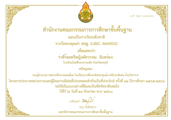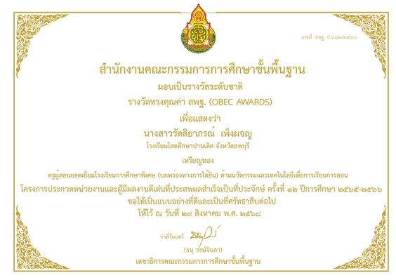 รางวัลระดับชาติ รางวัลทรงคุณค่า สพฐ. (OBEC AWARDS) ระดับเหรียญทอง